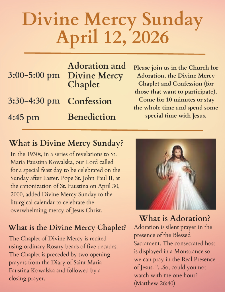 Sun Apr 12, 6:30 pm - 7:30 pm - All are welcome to this Sunday evening mass hosted by the Teens of St. Raymond. Please join us at 6:30...