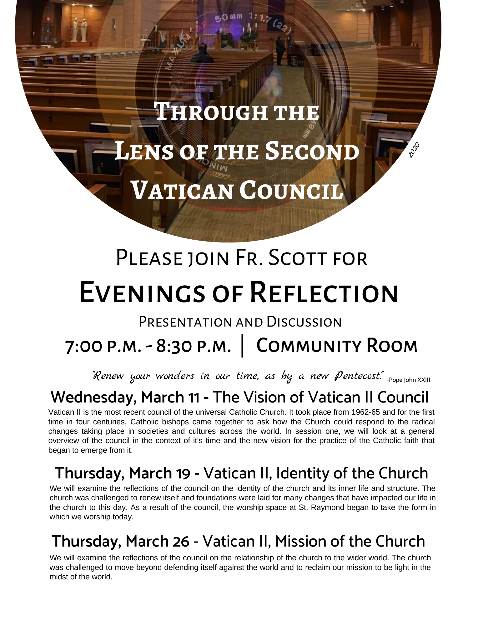 Sun Apr 12, 6:30 pm - 7:30 pm - All are welcome to this Sunday evening mass hosted by the Teens of St. Raymond.  Please join us at 6:30...
