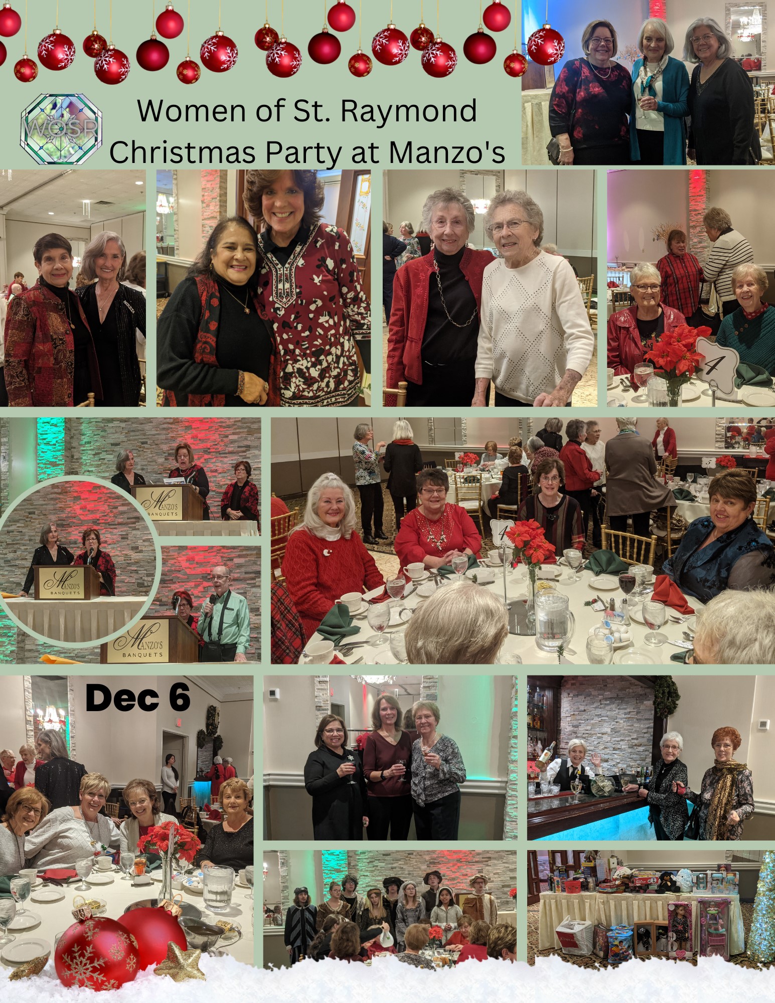12-3-24  Tuesday   Christmas Party @ Manzos ($$)  6 pm collecting Toys and gift cards for Catholic Charities