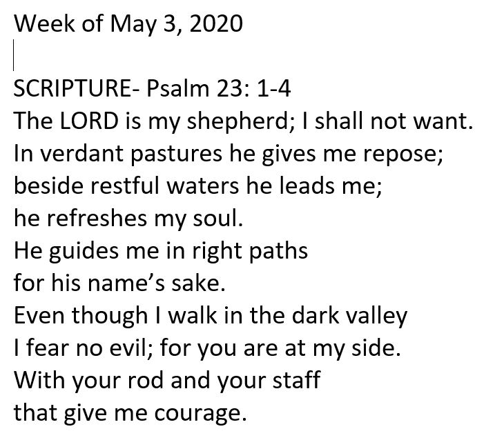 WEEK of May 3, 2020: To view all of the scriptures click here- http://www.usccb.org/bible/readings/050320.cfm