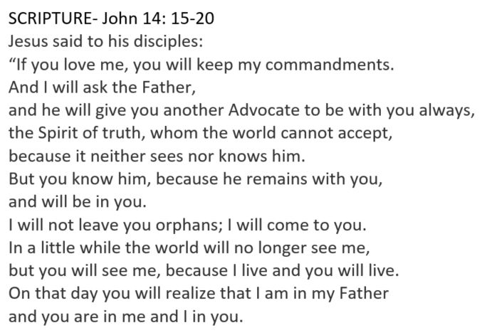 WEEK of May 10, 2020: To view all of the scriptures click here- http://www.usccb.org/bible/readings/051720.cfm