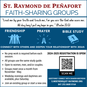 St. Raymond parish has 2 different women’s small groups to connect in friendship, strengthen your faith, and deepen your relationship with Jesus Christ, helping to build a community of the Body of Christ sent forth to share God’s love with all that we encounter.