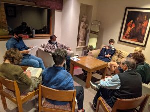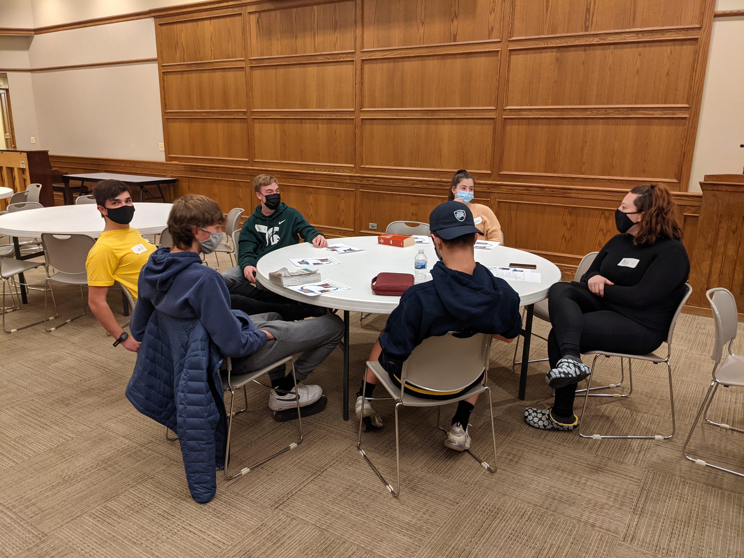 - Sunday Evening Meetings: Twice a month, we meet in Coggins Hall to connect by exploring different aspects of our faith and providing opportunities to share knowledge about navigating teenage experiences.